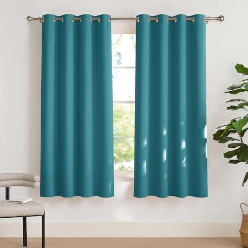 DWCN Gardin ogenomskinliga mörkläggningsgardiner med öljetter 2 stycken thermogardin för vardagsrum, sovrum, turkos, 183 x 167 cm (H x B):
