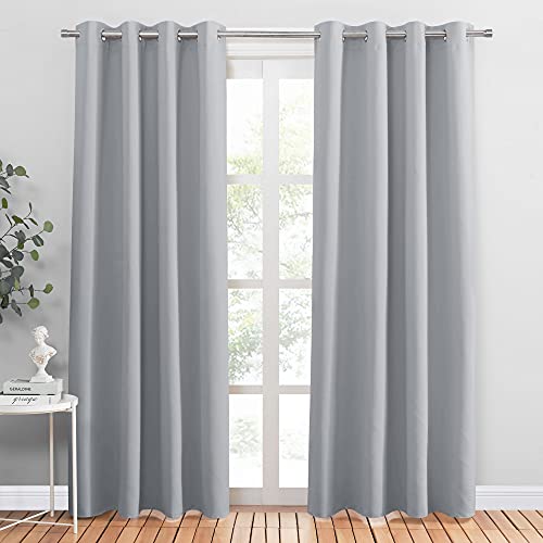 Deconovo Mörkläggningsgardiner med öljetter Gardiner sovrumsgardin ogenomskinlig, 183x168 cm (höjdx bredd), ljusgrå, uppsättning med 2