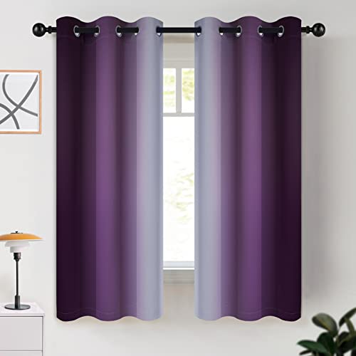 COSVIYA Mörkläggningsgardiner med öljetter, draperier, ombre-effekt, 2 paneler, ljusblockerande, isolerade termiska gardiner, gradienta gardiner för sovrum/vardagsrum, lila/gråvit, 107 x 160 cm