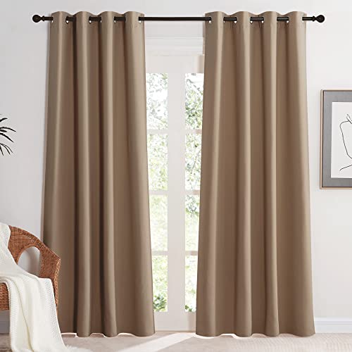 KGORGE Värmeisolerande gardiner – anti-UV-gardin, dekoration för flickrum, pojke, vuxna, mörkläggningsgardiner fönstergardiner med öljetter, 140 x 220 cm, 2 paneler, mocka