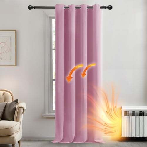 Deconovo Mörkläggningsgardiner, värmeisolerade, kalla gardiner, 140 x 260 cm (bredd x höjd), gardiner för flickrum, modern design med öljetter, rosa, 1 st