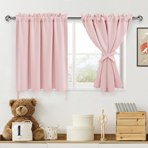 DWCN Rosa mörkläggningsgardiner för flickrum, kort för litet fönster, termisk för sovrum, 91 cm för vardagsrum, kontor – 102 x 81 cm, rosa (112 x 81 cm), rosa (1 par