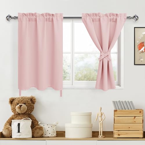 YGO Rosa gardiner 117 cm längd för barnrum värmeisolerade heta rosa mörkläggningsgardiner för sovrum små korta fönster drapering genomföring 132 x 115 cm lång