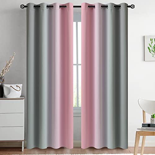 Yakamok Ombre rosa och grå gardiner för sovrum, tonade mörkläggningsgardiner för rum, genomföring värmeisolerade ljusblockerande fönsterdraperier/gardin för vardagsrum, 132 x 213 cm, 2 paneler