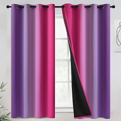 COSVIYA 100% mörkläggningsgardiner och draperier rosa lila, 132 x 153 cm, 2 paneler, mörkläggning för hela rummet, genomföring, gradient, isolerad, termisk, sovrum/vardagsrum