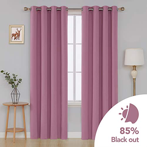 Deconovo Gardiner med öljetter, bullerskyddande gardinskal, mörkläggningsgardiner, 175x140 cm (höjd x bredd), rosa, uppsättning med 2