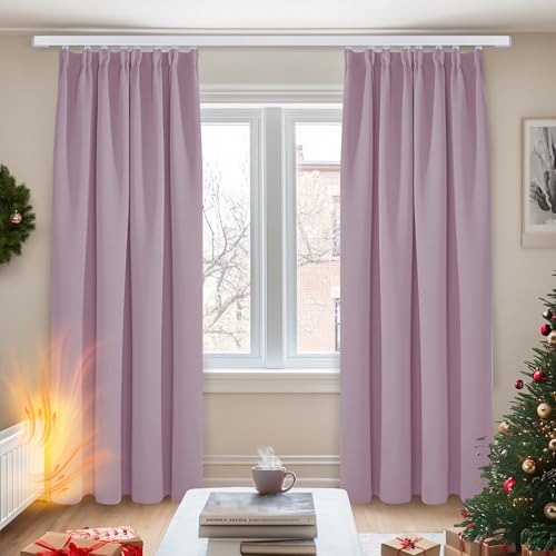 Deconovo Termiska gardiner mörkläggningsgardiner med curlingtejp, 200x140 cm (höjd x bredd), rosa, set om 2