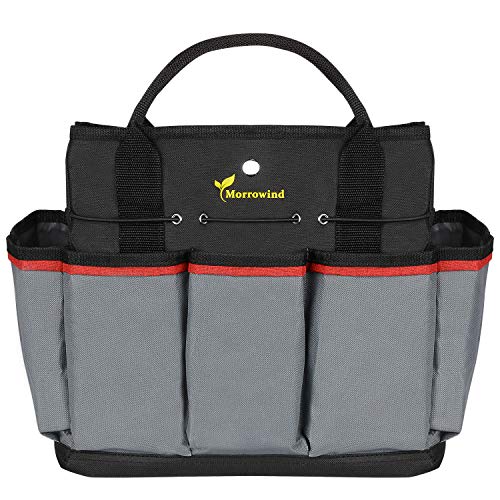 Morrowind Trädgårdsredskapsväska, Oxford Tyg Trädgårdstygväska TrädgårdsredskapsförvarinGsväska Verktygsorganisator med 8 Yttre Fickor för Trädgårdsarbete med Gräsmatta, Grå