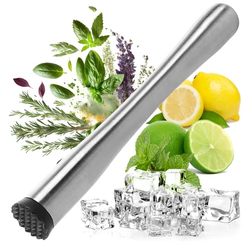 Robin Goods® Cocktail Muddler - Iskross i rostfritt stål - Iskross - Cocktailmortel i plasthuvud - Limepressare - Bar & kökstillbehör (1 st - mortelstöt)