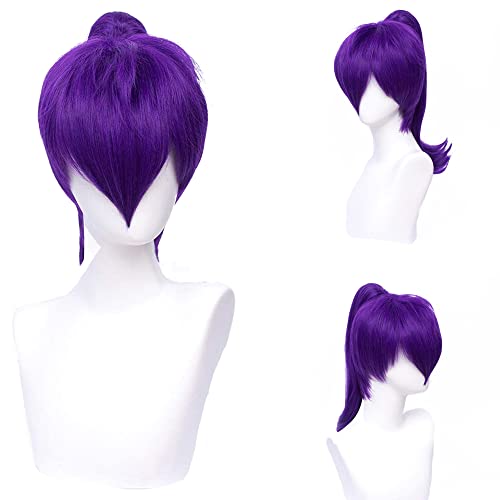 Morticia kort rak lila dam kostym cosplay peruk med lång avtagbar hästsvans