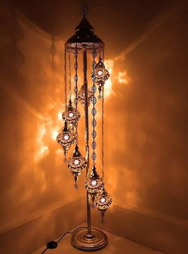 DEMMEX Högaste 11 glober turkisk marockansk mosaik golvlampa i Tiffany-stil, turkisk stående golvlampa för vardagsrum, sovrum, matsal, kontor, 100 % handgjord i Turkiet, 7 fot (alla flerfärgade)
