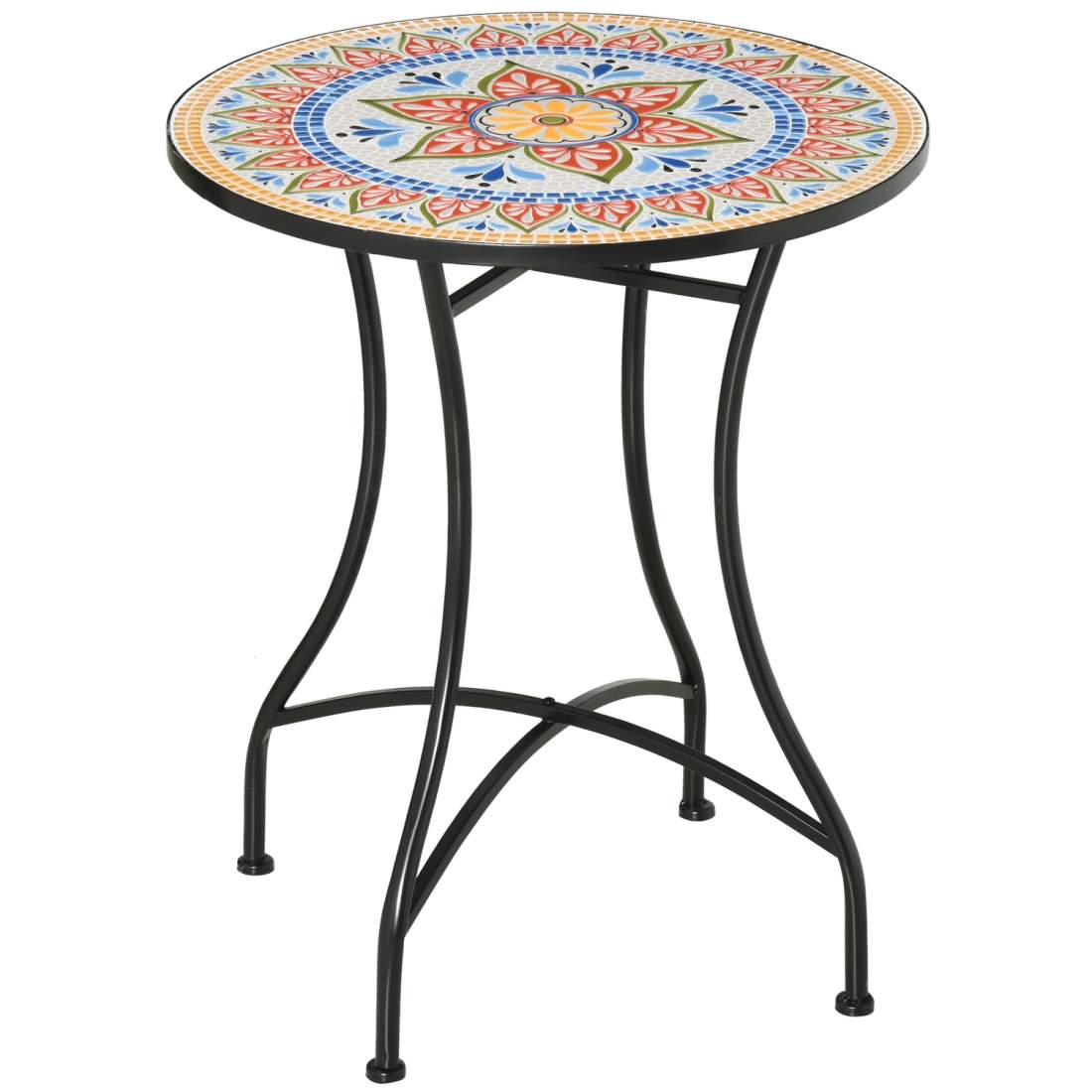 Trädgårdsbord Mosaikbord Runt Bistrobord Sidobord Med Mosaikskiva Keramik Metall Röd + Blå + Vit Ø60 Cm