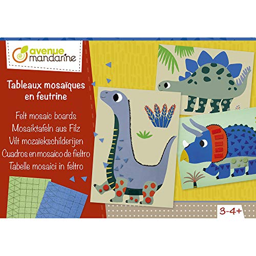 Avenue Mandarine KC091C – en kreativ låda mosaikbord av yllefilt med 4 dinosauriebyxor + 6 filtklistermärken