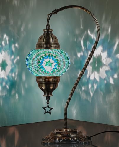 DEMMEX äkta turkisk marockansk mosaikbord, autentisk handgjord i Turkiet, mosaikglasglob sängbord lampskärm för sovrum, vardagsrum, snygg dekorativ belysning, 38 cm, turkos
