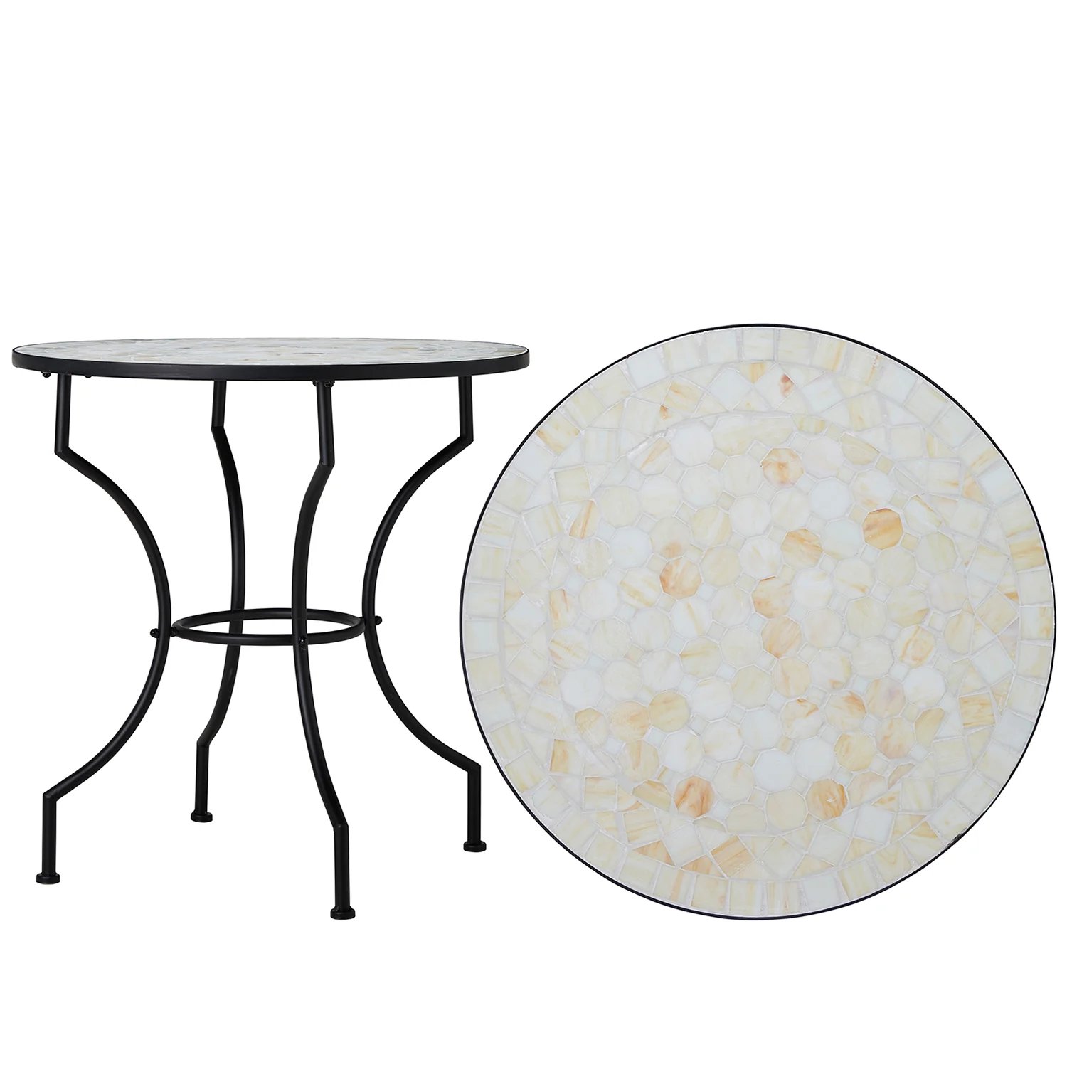 Trädgårdsbord mosaikbord balkongbord sidobord serveringsbord runt stål + keramik orange + vit Ø60 x H71 cm