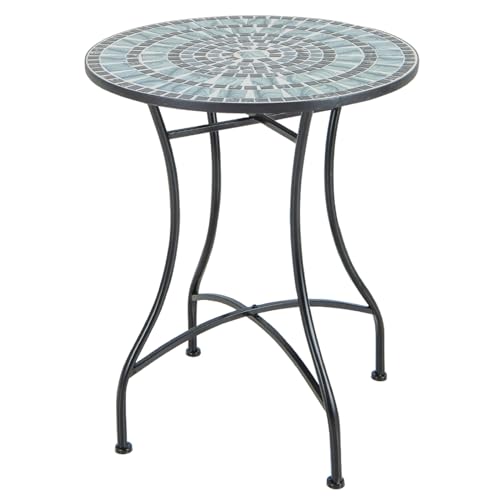 COSTWAY Mosaik trädgårdsbord, mosaikbord rund, bistrobord, terrassbord, balkongbord för terrass, trädgård, pool, 60 x 60 x 72 cm