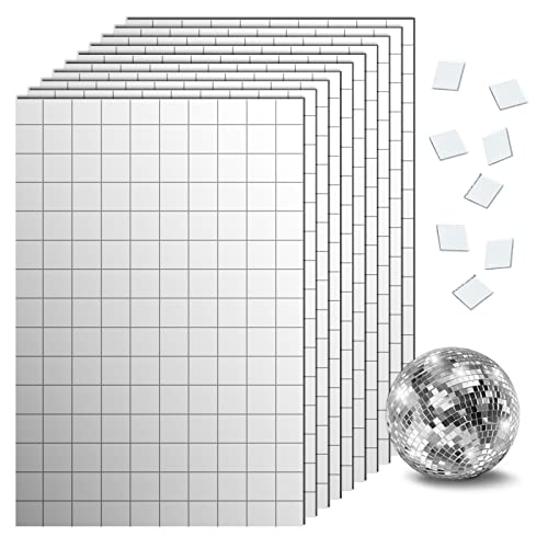 SAVITA 1500 st Självhäftande Speglar Mosaikplattor, 10 ark Glasspeglar Mosaikplattor Klistermärke för Discokulor Hantverksdekoration (10x10mm)