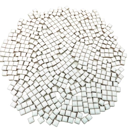 BTMIEY 500 g fyrkantiga keramiska mosaikplattor, 500 st 1 x 1 cm handgjorda kreativa mikromosaikdelar för älskare gör-det-själv mosaikprojekt och heminredning (vit)
