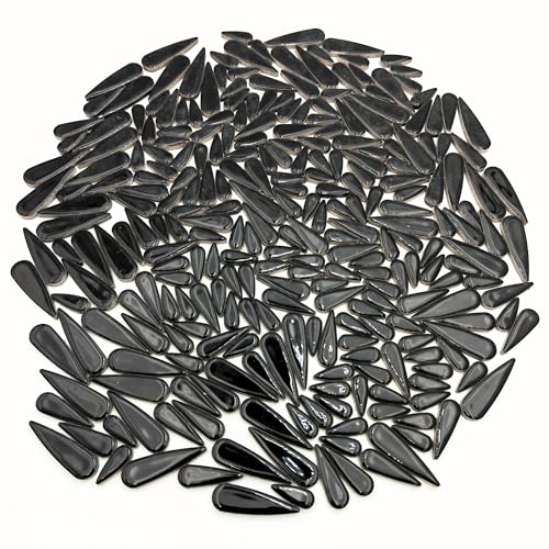 500 g vattendroppe kronblad keramiska mosaikplattor för gör-det-själv-hantverk, tårformade keramiska mosaikdelar för fotoramar, koppar, blomkrukor, fiskbehållare, vaser, gör stegstenar (svart)