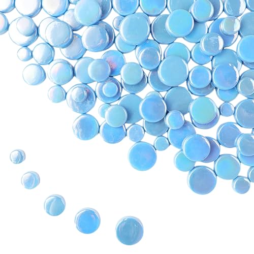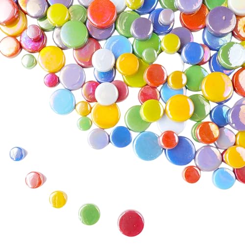 Iriserande runda mosaikplattor i glas för hantverk, 500 g minirirkel mosaik glasdelar för blomkrukor, vaser, koppar, trädgård och heminredning gör-det-själv tillbehör för mosaik (blandade färger)