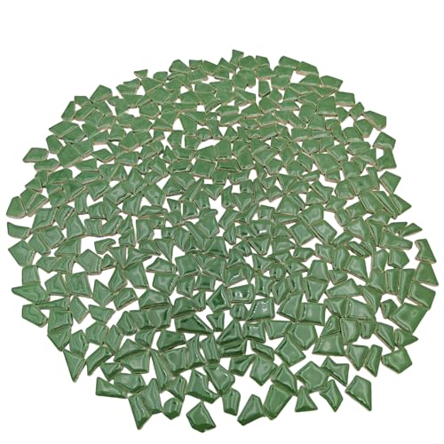 BTMIEY 500 g oregelbundna keramiska mosaikplattor, 0,5 x 2 cm små mosaikdelar stenar för gör-det-själv mosaiktillverkning, hantverk, hobbykonst, hem, väggdekoration (grön)