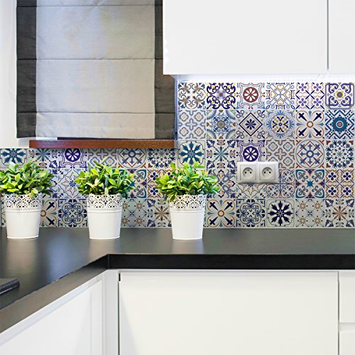 16 självhäftande klistermärken för kakel | klistermärke cementplattor - mosaikplattor badrum och kök | cementplattor väggplattor - azulejos - 10 x 10 cm - 16 stycken