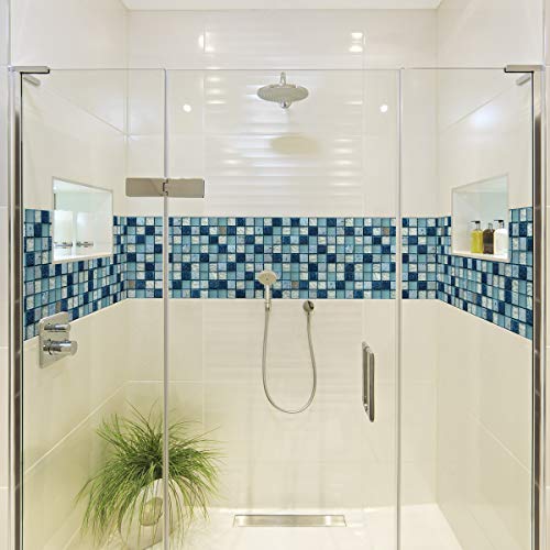 15 självhäftande kakelklistermärken | Badrum och kök vägg mosaikplattor | 10 x 10 cm, blå, uppsättning med 15