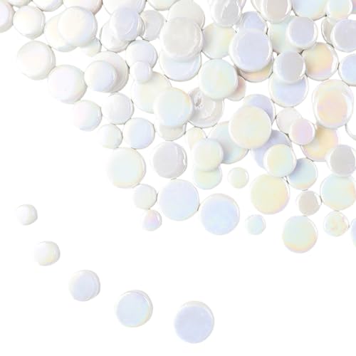 Iriserande runda mosaikplattor i glas för hantverk, 500 g minirirkel mosaik glasdelar för blomkrukor, vaser, koppar, trädgård och heminredning gör-det-själv tillbehör för mosaik (vit)