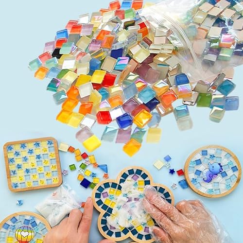 Lxoraziy 1 000 g kristall mosaikplattor, dekorativa mosaikplattor, 10 x 10 x 4 mm, fyrkantig mosaik för gör-det-själv-konst, hantverksprojekt (blandade färgserier)