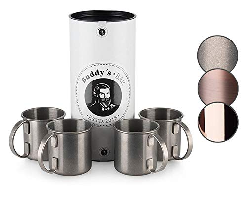 Buddy´s Bar – Moscow Mule mugg 450 ml, högkvalitativ rostfri mugg, livsmedelssäker, cocktailkopp inklusive presentförpackning, rostfritt stål antik, uppsättning av 4