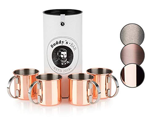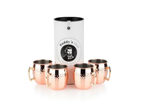 Buddy´s Bar – Moscow Mule bägare, 450 ml, högkvalitativ rostfri mugg, livsmedelssäker, cocktailkopp inklusive presentförpackning, kopparpolerad, uppsättning om 4