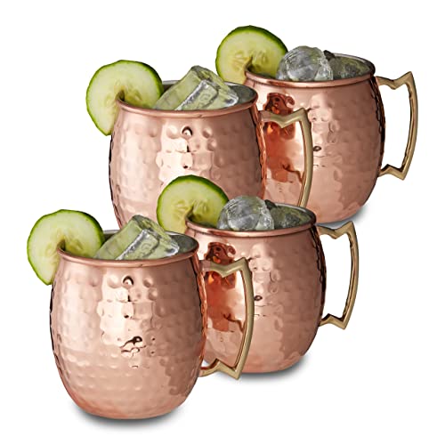 Zap Impex Moscow Mule-kopp i ren koppar, ingen beläggning, hamrad koppar, bra för underhållning, för alla kylda drycker, för en bar eller för hem, bra bar gåva, set med 4, ZPPCH-44