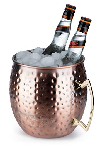 Buddy´s Bar – Moscow Mule flaskkylare, 5 liter volym, högkvalitativ rostfri kylare, livsmedelssäker, hammareffekt, jättecocktailkopp, hamrat, koppar antik, 1 styck