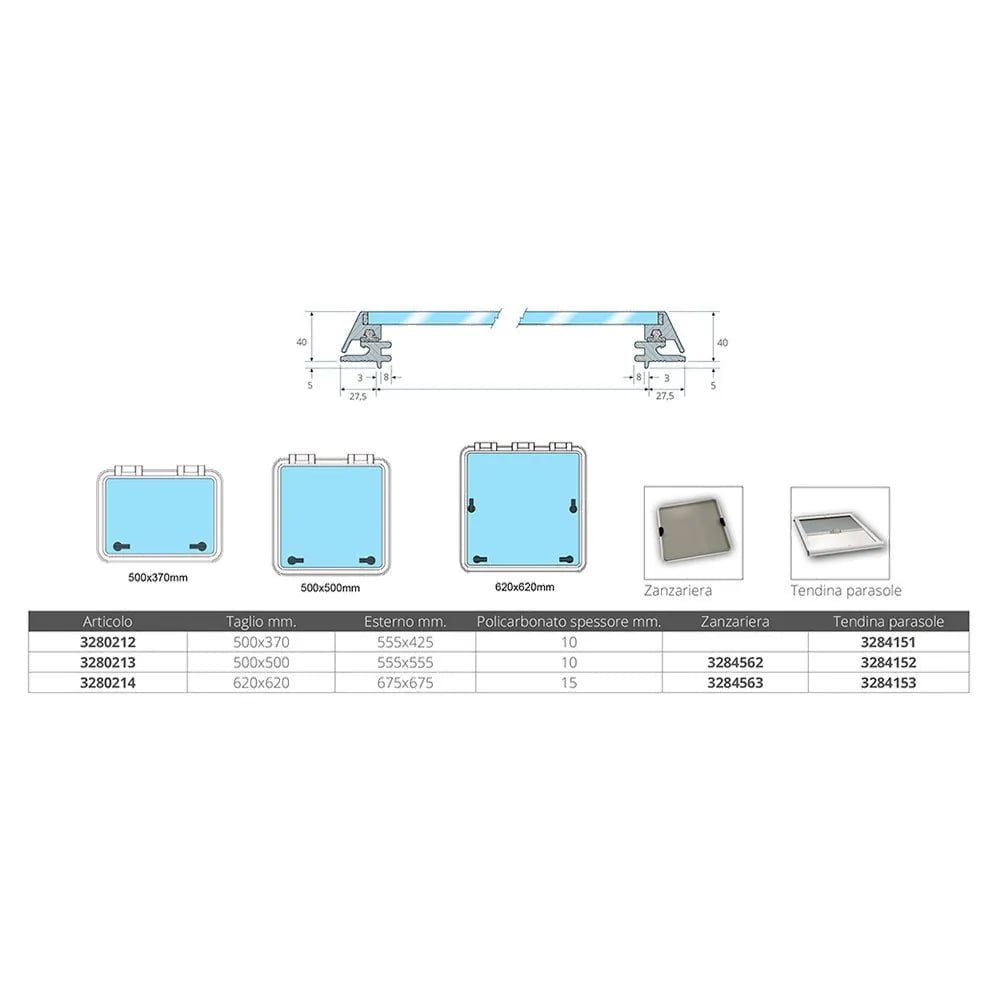 Blue Performance 3 Deck Hatch Cover With Mosquito Net Durchsichtig 58 x 58 cm