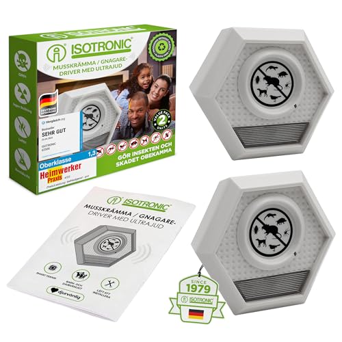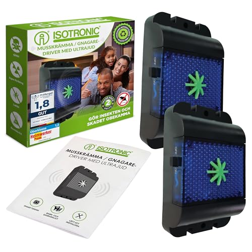 ISOTRONIC musskrämma med ultraljud och ljusblixt | djurskydd mot möss, råttor, fåglar, katter, tvättbjörnar UVM. – Musskrämma för inomhus- och utomhusbruk – 2 x 100 m² effektivitet