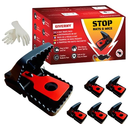 GIVERNY XL råttfälla (6-pack) – Extra stor, kraftig snäppfälla för möss och råttor, återanvändbar, kraftfull omedelbar dödande effekt, för inomhus- och utomhusbruk