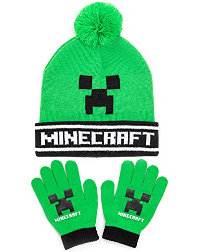 Minecraft Kids Bobble Hat handskar set Creeper stickad mössa gamer blanda en storlek, svart, En Storlek