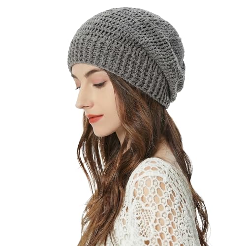 ZLYC Dam bomull virkad lös mössa hatt handgjord stickad sommar skalle keps, Vanlig grå, one size