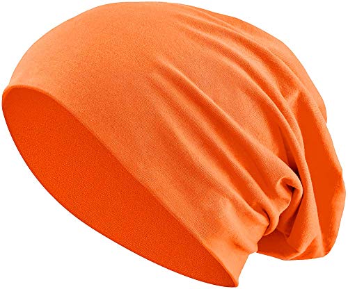 Jersey Bomull Elastisk Lång Slouch Mössa Unisex Mössa Heather i 35 olika färger (3) (Orange)