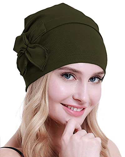 osvyo Bomull kemoturbaner huvudbonad mössa mössa för kvinnor cancer patient håravfall, BOMULL ARMY GRÖN, en storlek