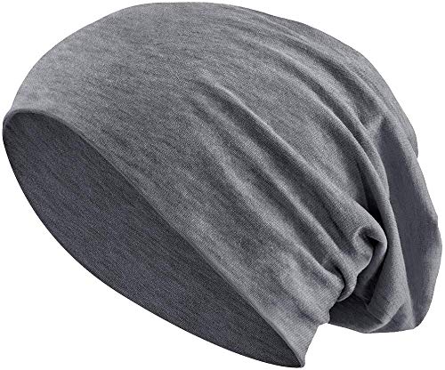 Jersey Bomull Elastisk Lång Slouch Mössa Unisex Mössa Heather i 35 olika färger (3) (Heather Mörkgrå)