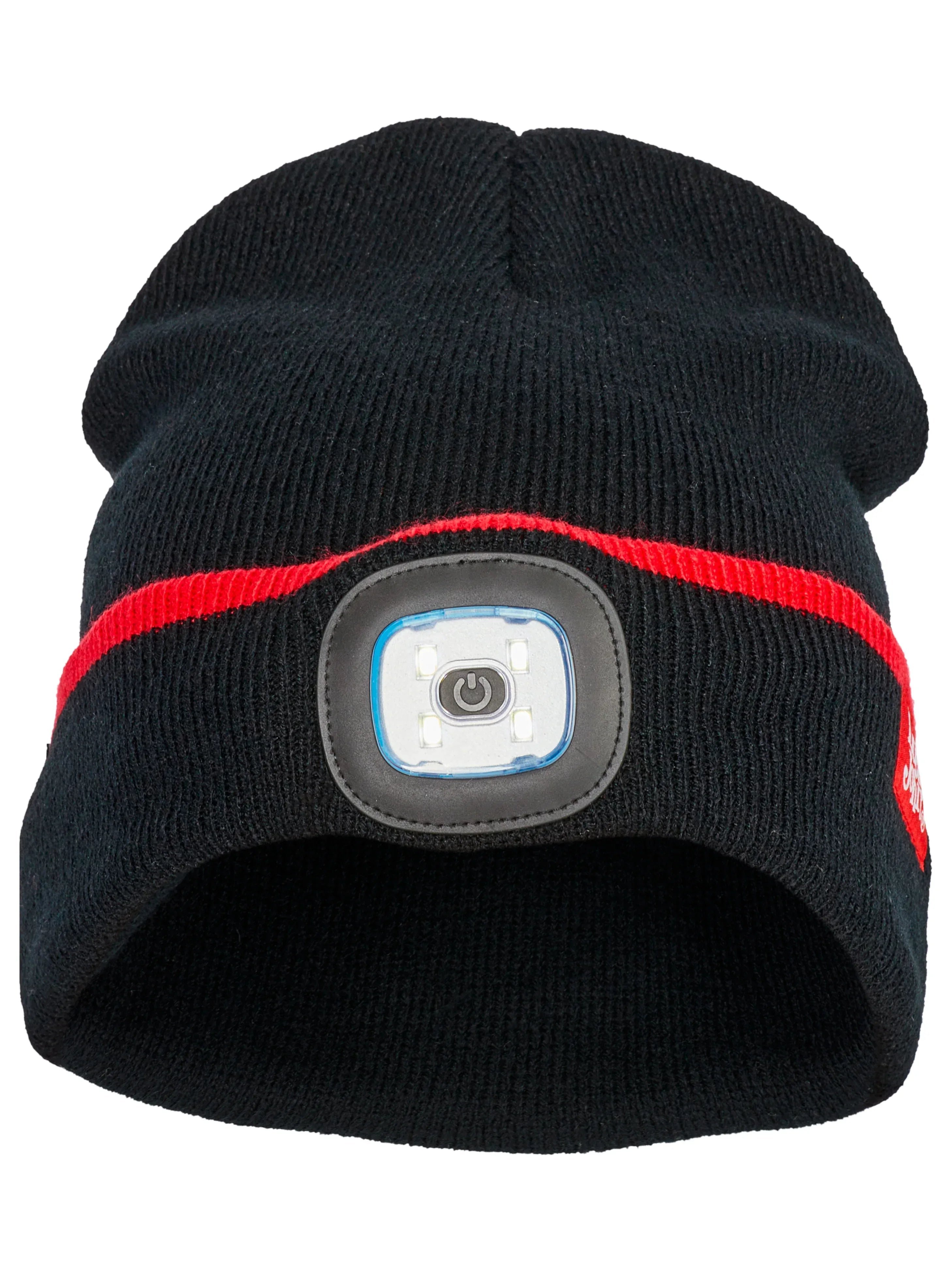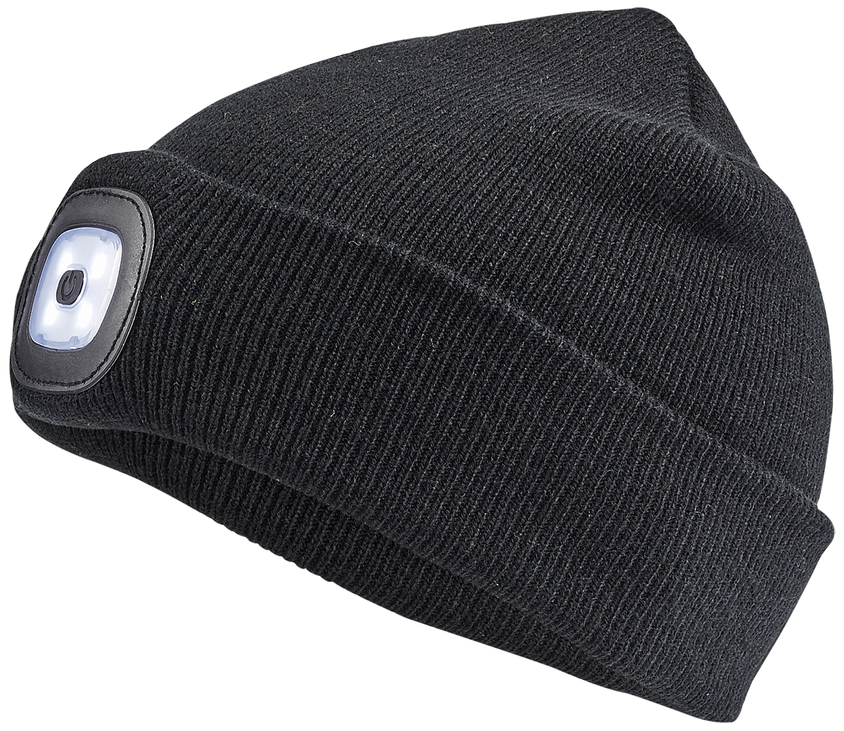 Gebol LED-mössa svart | Pannlampa på stickad mössa | beanie med reflektionsremsor | USB-port för laddning | 60 minuters ljustid | 4 ljusnivåer | unisex | svart | 1 styck