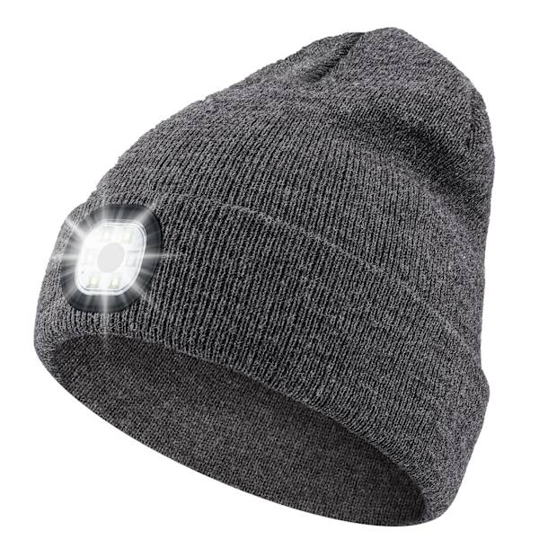 TAGVO Musik mössa hatt med lampor, LED Beanie keps, belysning och blinkande lägen, inbyggd stereohögtalare och mikrofon, pannlampa hörlurar mössa julklapp, unisex vinter varm stickad mössa, Grå, en