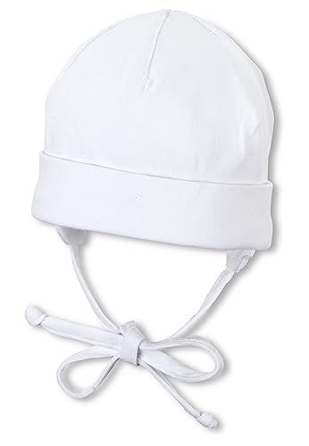 Sterntaler OCS Beanie Uni – Baby Beanie mössa av singlejersey (bio) – Pojkar huvudbonad med kuvert och öronlappar – baby och barn övergångsmössa för knytning – från födseln, Vit, 41