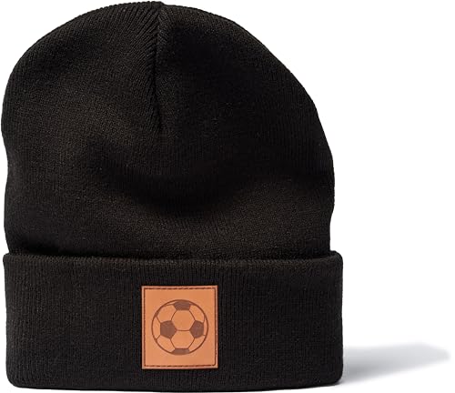 Fotbollsmössa för barn: fotboll läder emblem – stickad mössa för barn för fotbollsspelare träningsmössa vintermössa mössa mössa barn mössa pojke och flicka present, svart, En Storlek