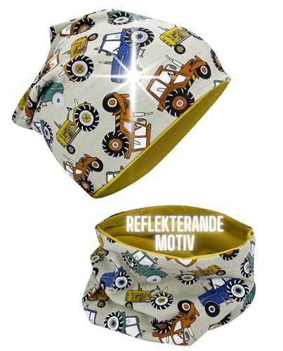 HECKBO Kids Hat & Loop-halsdukset - 360° Reflektorsäkerhet - Andningsbart bomullstyg - Mössa pojke traktor, en storlek, bomull
