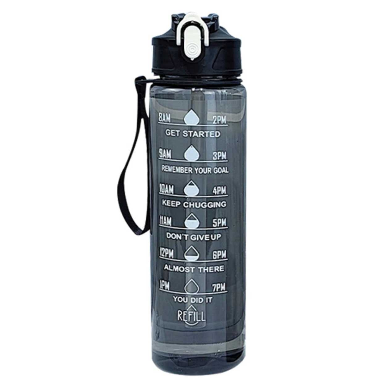 Minimalistisk Motivational Vattenflaska med Tidsmarkör 1000ml Svart