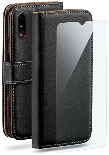 moex Mobiltelefonfodral för Moto E7 Power/E7i Power fodral med [kortfack] [stativfunktion] [Premium PU-läder] skyddande fodral mobilfodral läderfodral med skyddsfolie – svart