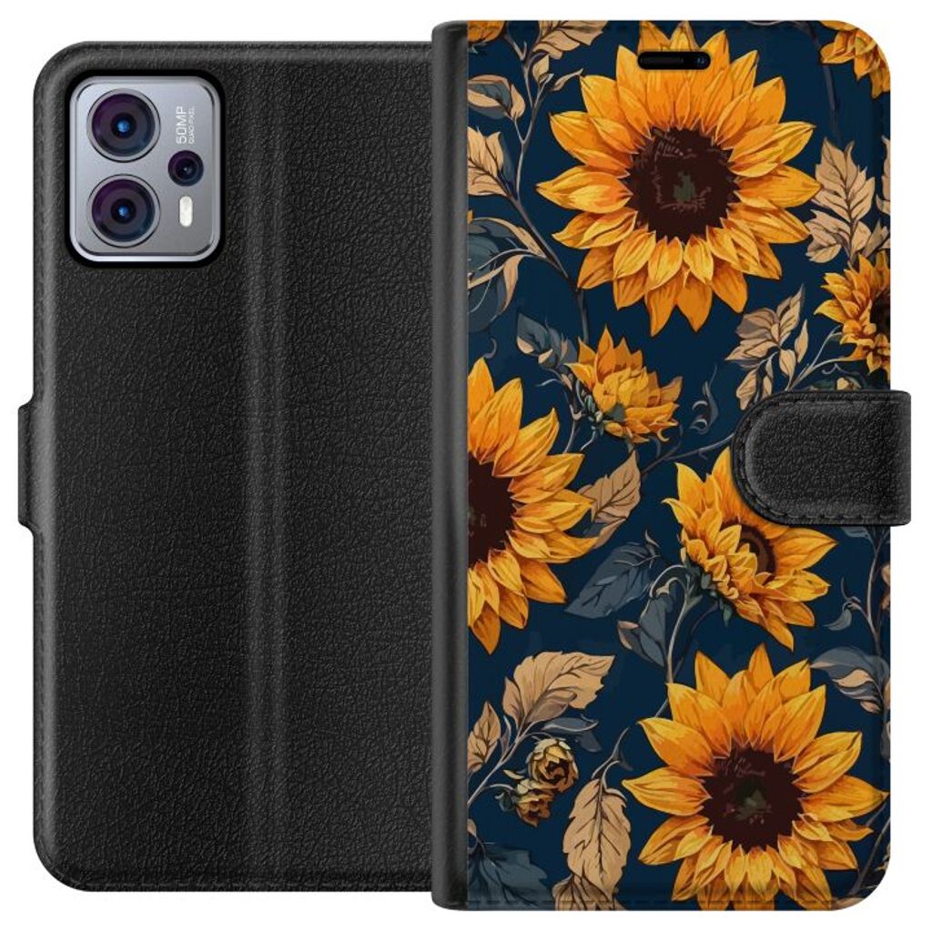 Motorola Moto G23 Svart Plånboksfodral Solrosor