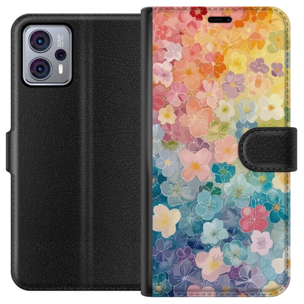 Motorola Moto G23 Svart Plånboksfodral Miniatyrblommor